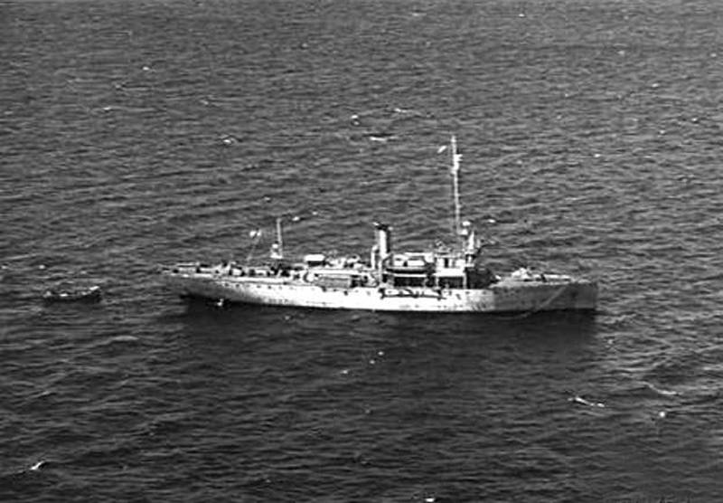 was sunk. Here USS Whippoorwill (AM 35) was already picking up
